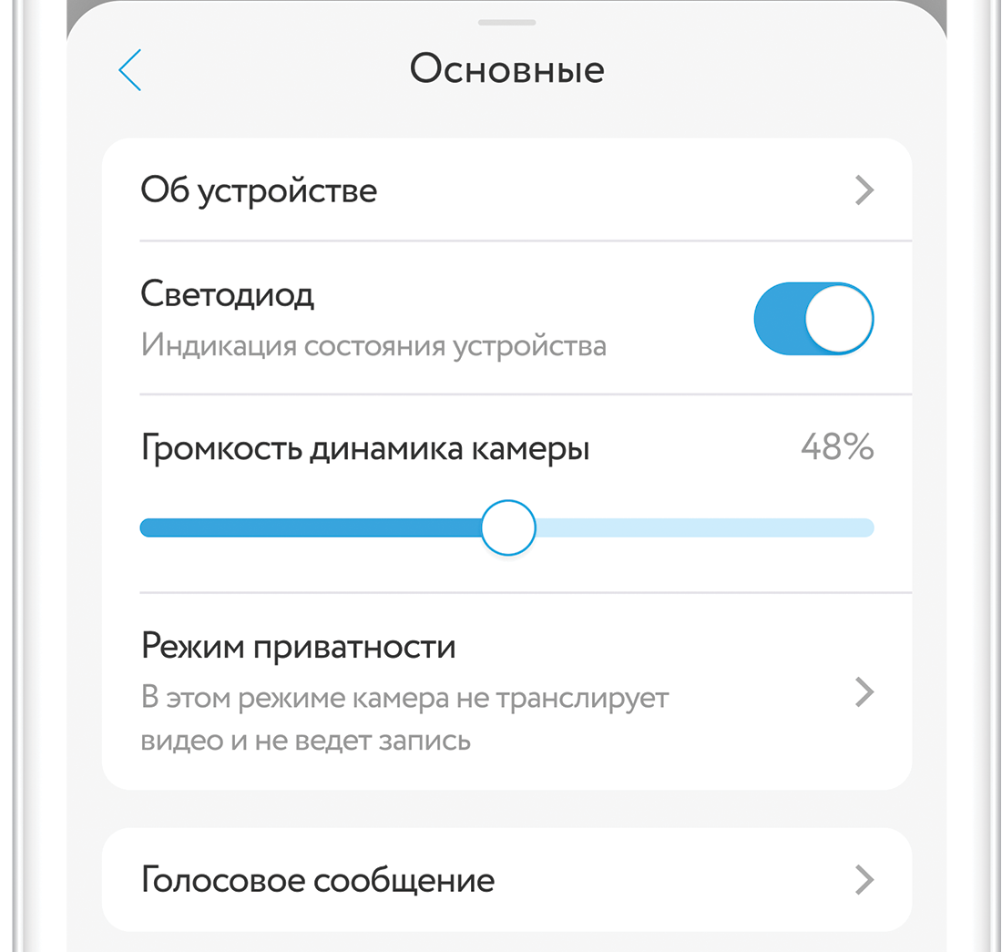 Режим приватности — отключает трансляцию видео и запись на карту памяти. Управляйте режимом вручную или настройте срабатывание по расписанию.