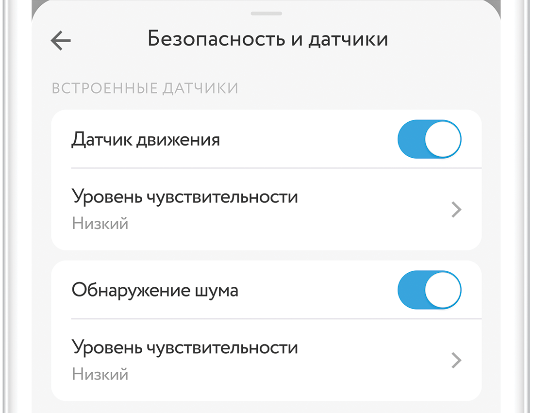 Незваные гости также будут замечены благодаря встроенному датчику движения. После срабатывания любого из них, вы получите уведомление на смартфон. Чувствительность датчика можно настроить в приложении.