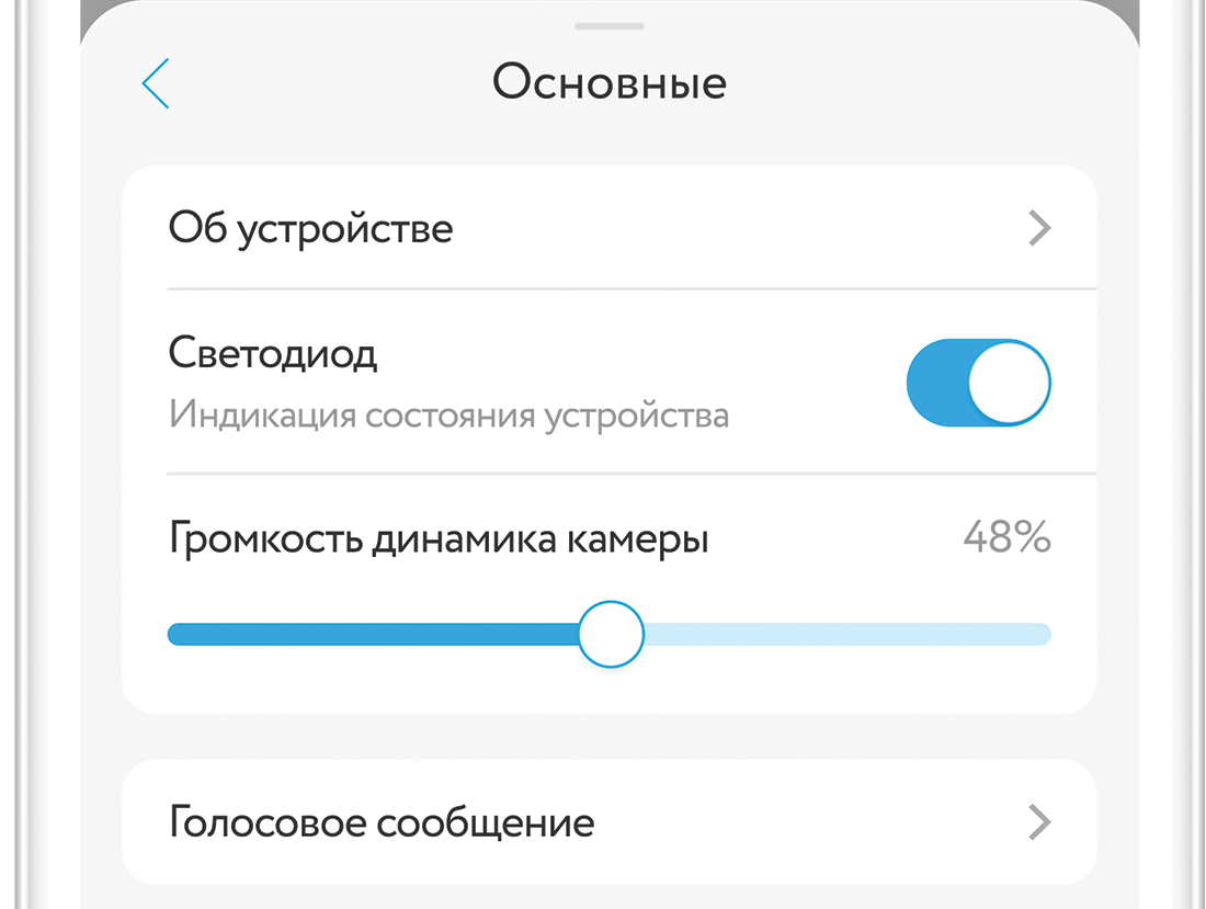 Об устройстве — информация о модели устройства, виртуальном ID, серийном номере, Wi-Fi сети, уровне сигнала Wi-Fi, IP-адресе, MAC- адресе, часовом поясе и версии ПО.