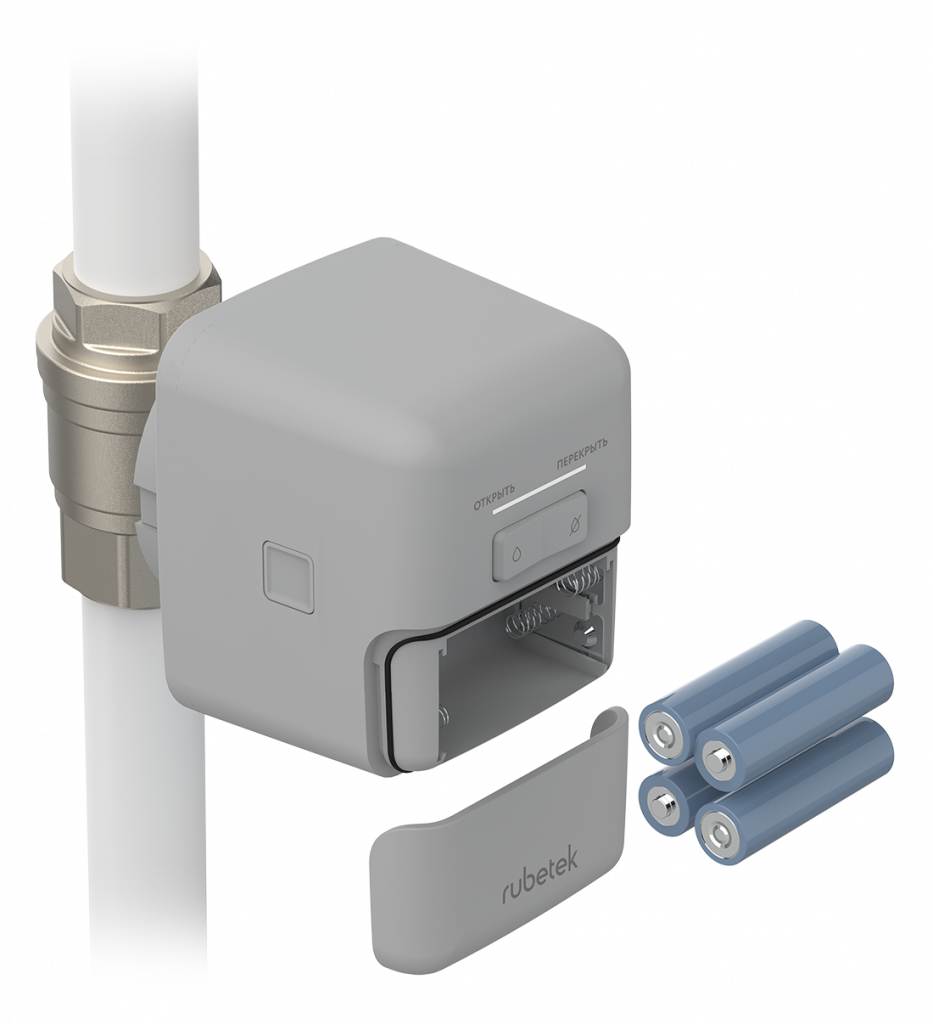 Электропривод с шаровым краном — это беспроводное устройство, позволяющее перекрывать воду как удалённо из приложения, так и автоматически, в случае возникновения протечки воды. Устройство доступно в двух вариантах комплектации, которые отличаются диаметром шарового крана: RLP-3811 (½") и RLP-3812(¾"). Необходимый размер вам может подсказать мастер, который будет монтировать систему трубопровода.
