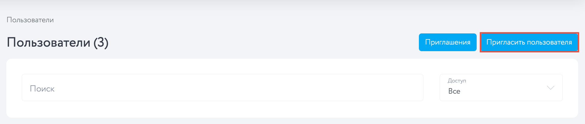 Для создания приглашения необходимо перейти в раздел “Пользователи” и нажать кнопку Пригласить пользователя.